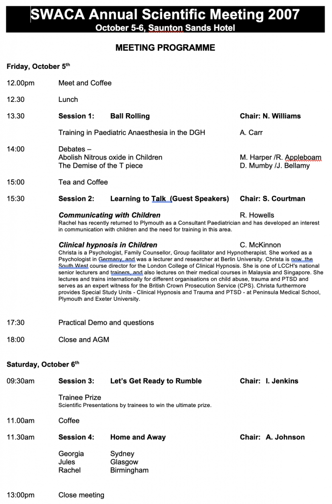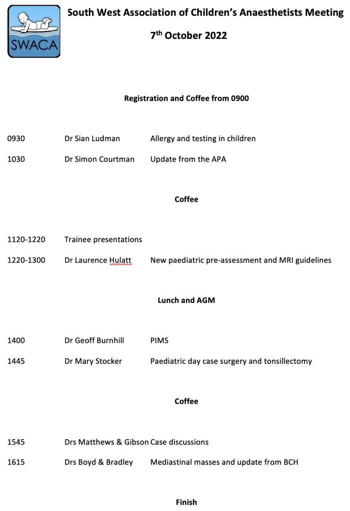 No records available. Please contact swaca.secretary@swpaediatricanaesthesia.org if you have any details about this meeting that we could share